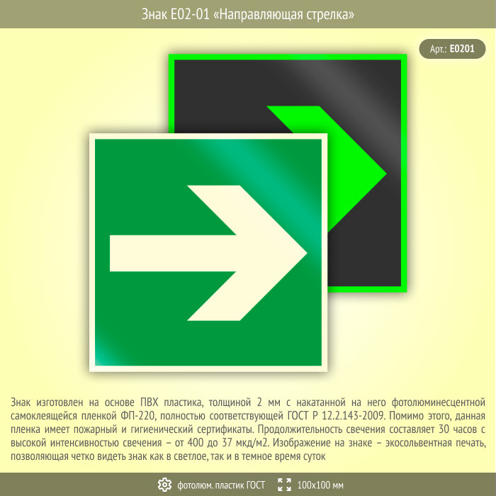 Знак E02-01 «Направляющая стрелка» (фотолюминесцентный пластик ГОСТ 34428-2018, 100х100 мм) в Лобне купить