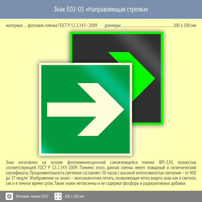 Знак E02-01 «Направляющая стрелка» (фотолюминесцентная пленка ГОСТ 34428-2018, 200х200 мм) в Лобне купить