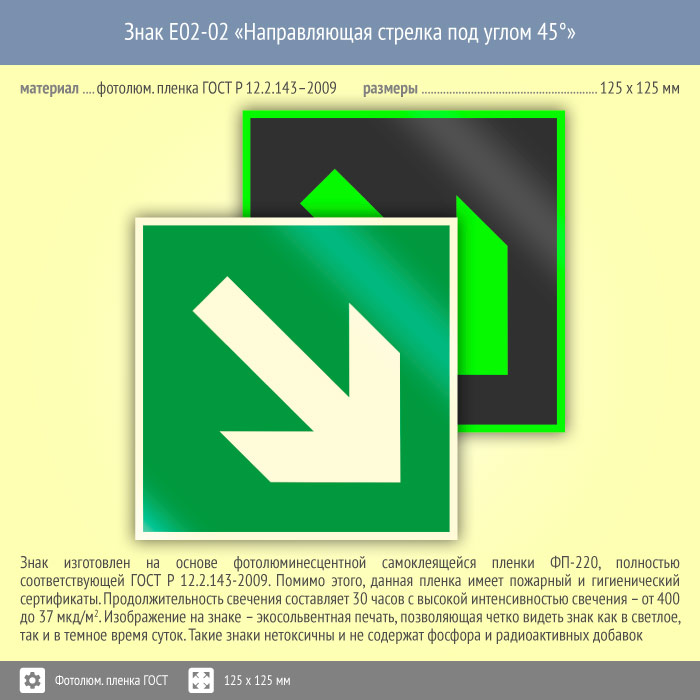 Знак E02-02 «Направляющая стрелка под углом 45°» (фотолюминесцентная пленка ГОСТ 34428-2018, 125х125 мм) в Лобне купить
