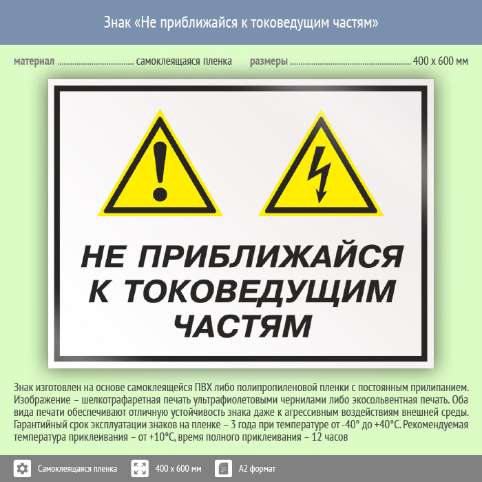 Знак «Не приближайся к токоведущим частям», КЗ-29 (пленка, 600х400 мм) в Лобне купить