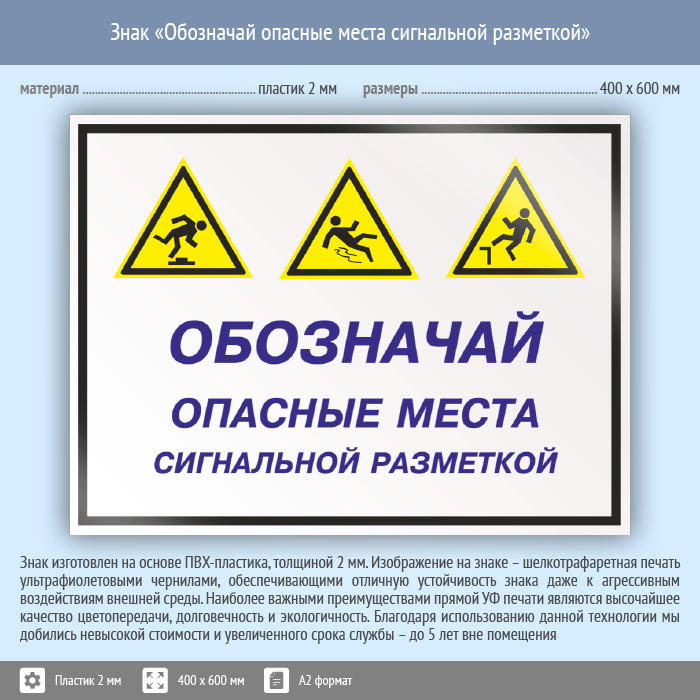 Знак «Обозначай опасные места сигнальной разметкой», КЗ-30 (пластик, 600х400 мм) в Лобне купить