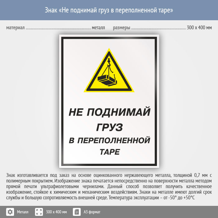 Знак «Не поднимай груз в переполненной таре», КЗ-26 (металл, 300х400 мм) в Лобне купить