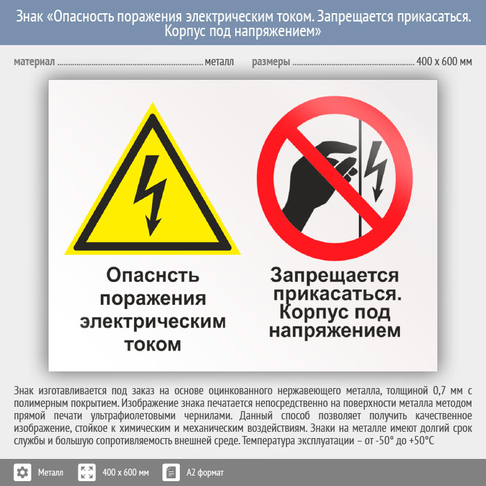 Знак «Опасность поражения электрическим током. Запрещается прикасаться. Корпус под напряжением», КЗ-47 (металл, 600х400 мм) в Лобне купить