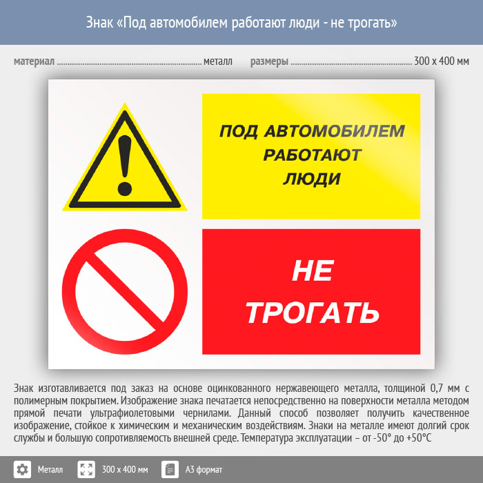 Знак «Под автомобилем работают люди - не трогать», КЗ-66 (металл, 400х300 мм) в Лобне купить