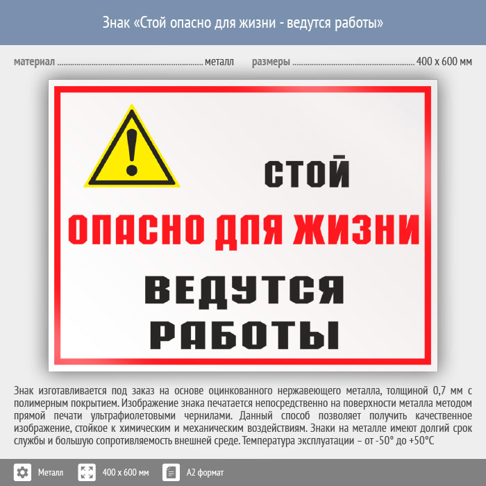 Знак «Стой опасно для жизни - ведутся работы», КЗ-86 (металл, 600х400 мм) в Лобне купить