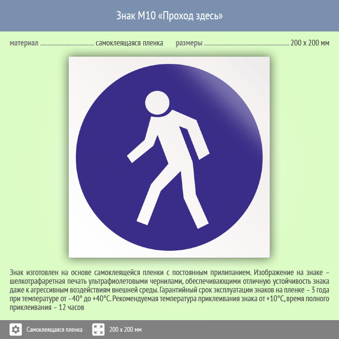 Знак M10 «Проход здесь» (пленка, 200х200 мм) в Лобне купить