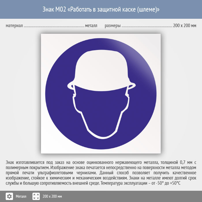 Знак M02 «Работать в защитной каске (шлеме)» (металл, 200х200 мм) в Лобне купить