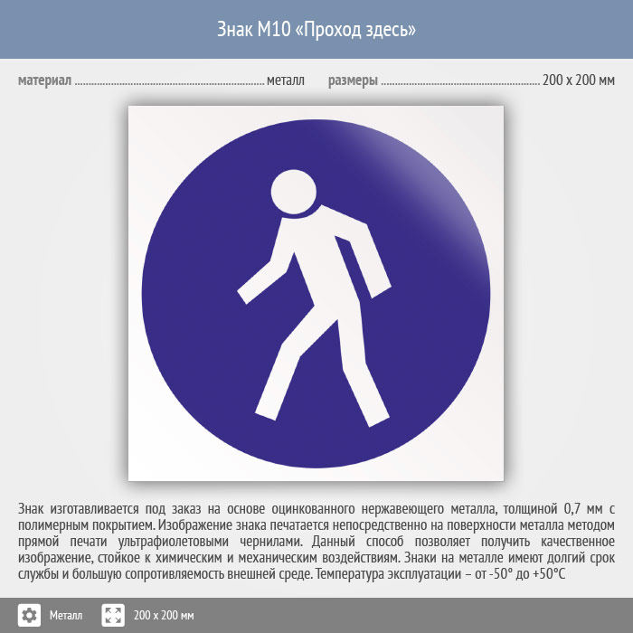 Знак M10 «Проход здесь» (металл, 200х200 мм) в Лобне купить