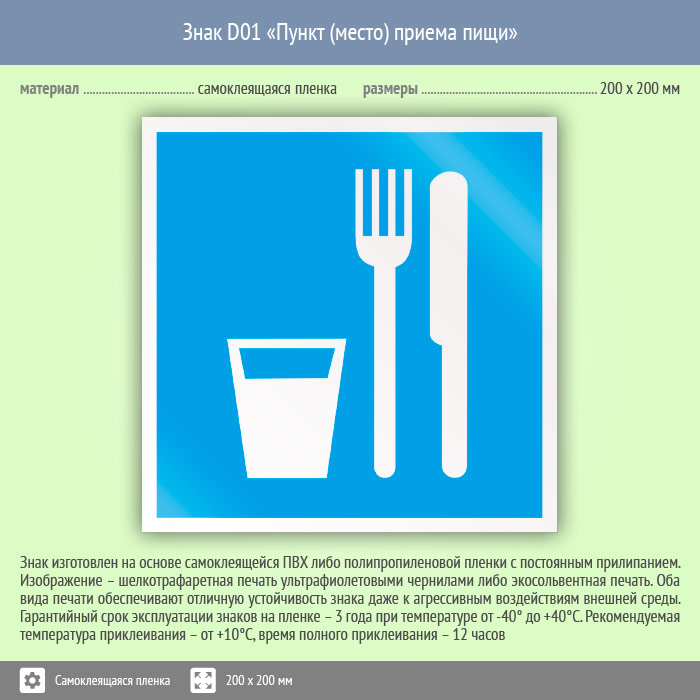 Знак D01 «Пункт (место) приема пищи» (пленка, 200х200 мм) в Лобне купить