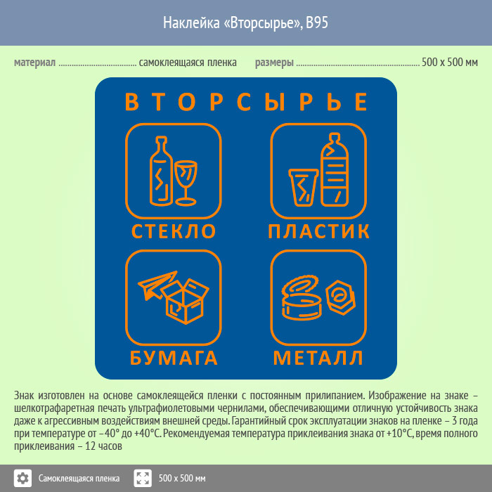 Наклейка на бак «Вторсырьё», B95 (пленка, 500х500 мм) в Лобне купить