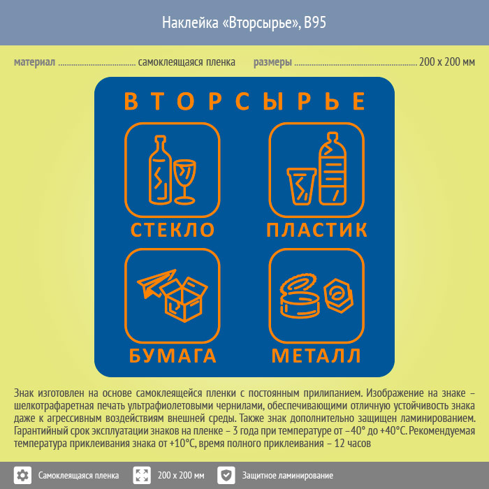Наклейка на бак «Вторсырьё», B95 (пленка c ламинированием, 200х200 мм) в Лобне купить