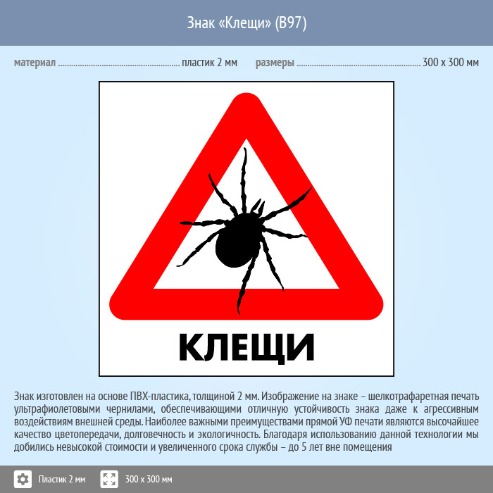 Знак «Клещи», B97 (пластик, 200х200 мм) в Лобне купить