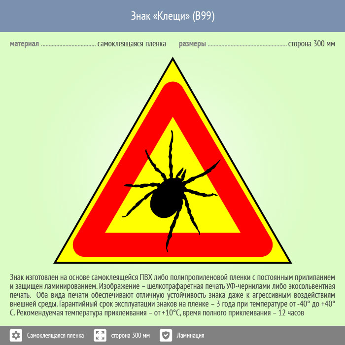 Знак «Клещи», B99 (пленка c ламинированием, сторона 200 мм) в Лобне купить