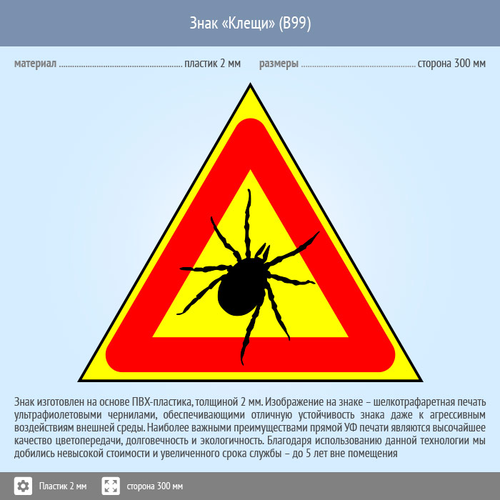 Знак «Клещи», B99 (пластик, сторона 200 мм) в Лобне купить