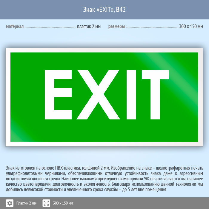 Знак «EXIT», B42 (пластик, 300х150 мм) в Лобне купить