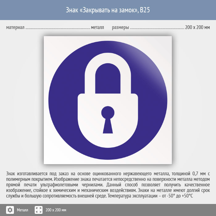 Знак «Закрывать на замок», B25 (металл, 200х200 мм) в Лобне купить