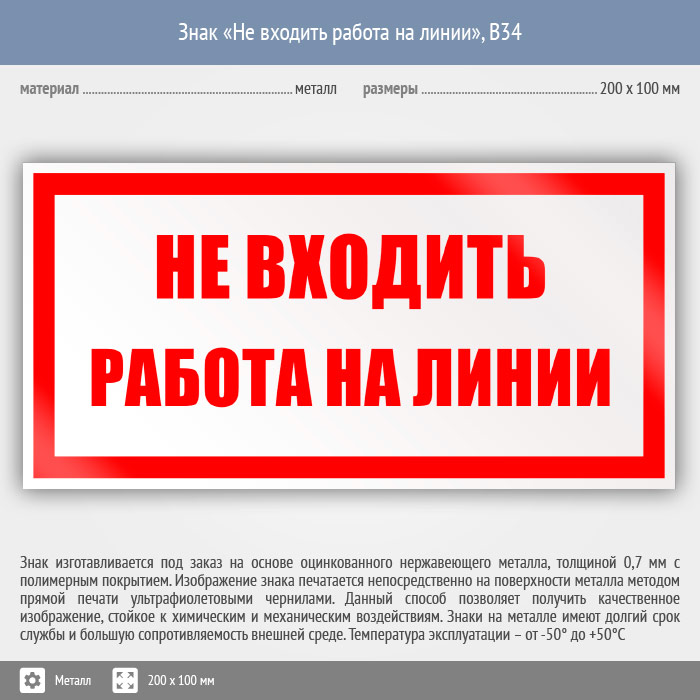Знак «Не входить работа на линии», B34 (металл, 200х100 мм) в Лобне купить