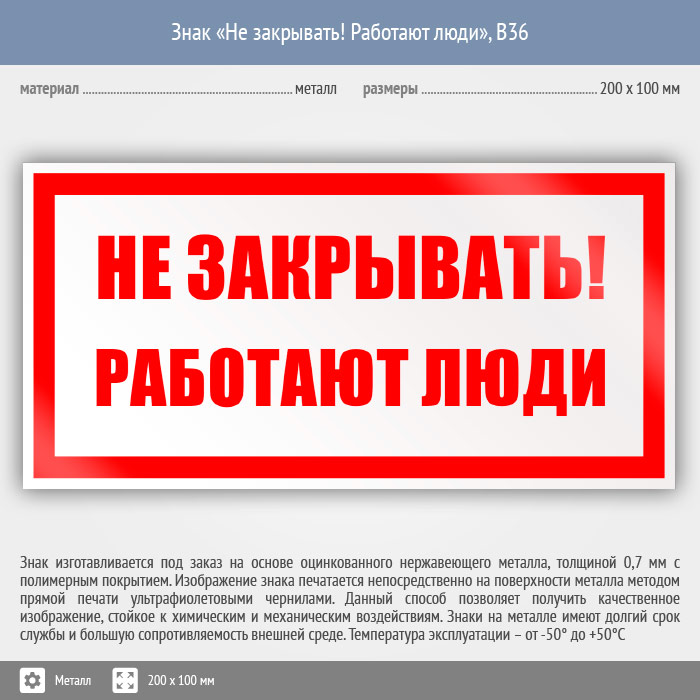 Знак «Не закрывать! Работают люди», B36 (металл, 200х100 мм) в Лобне купить