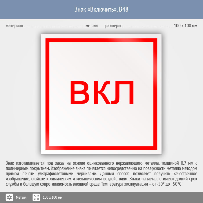 Знак «Включить», B48 (металл, 100х100 мм) в Лобне купить