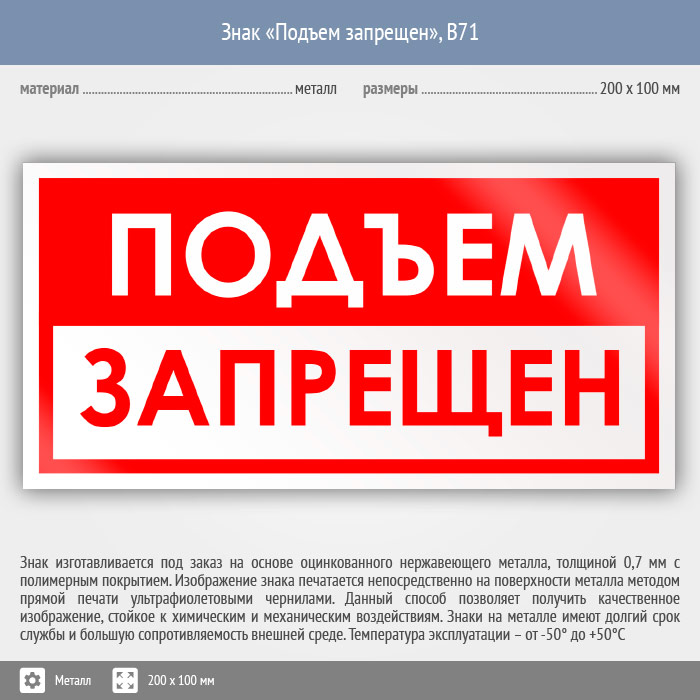 Знак «Подъем запрещен», B71 (металл, 200х100 мм) в Лобне купить