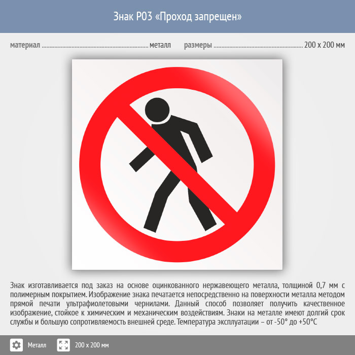 Знак P03 «Проход запрещен» (металл, 200х200 мм) в Лобне купить