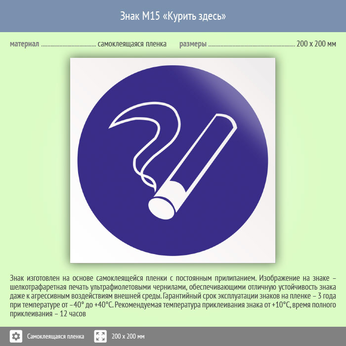 Знак «Курить здесь» имеет размер 200х200 мм