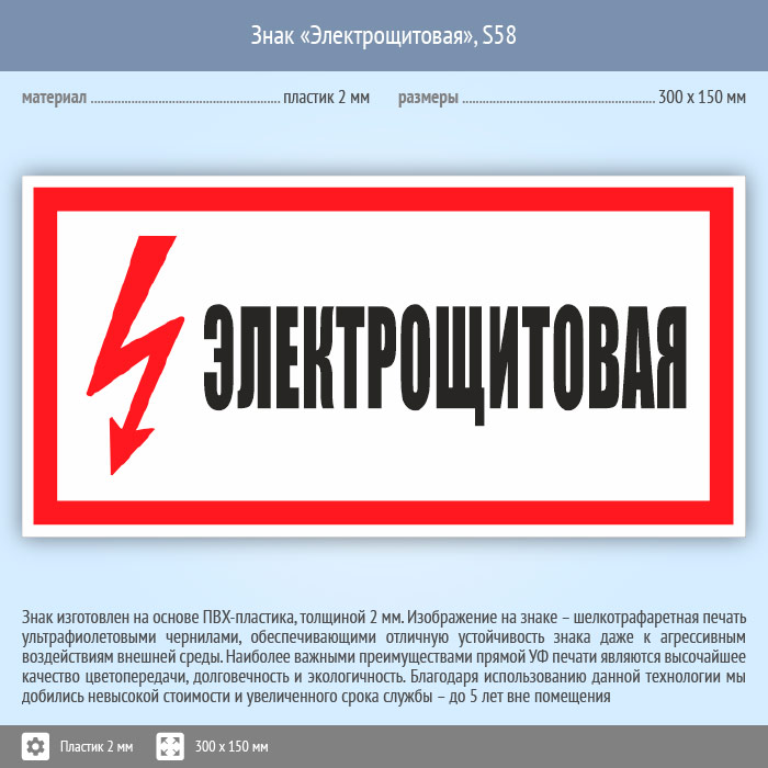 Знак (плакат) «Электрощитовая», S58 (пластик, 300х150 мм) в Лобне купить
