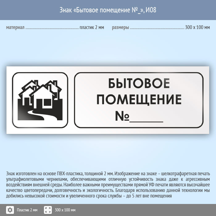 Знак «Бытовое помещение №_», И08 (пластик, 300х100 мм) в Лобне купить
