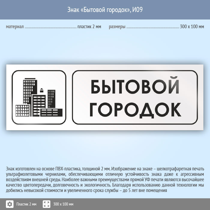Знак «Бытовой городок», И09 (пластик, 300х100 мм) в Лобне купить