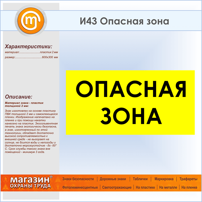 Знак «Опасная зона», И43 (пластик, 600х300 мм) в Лобне купить