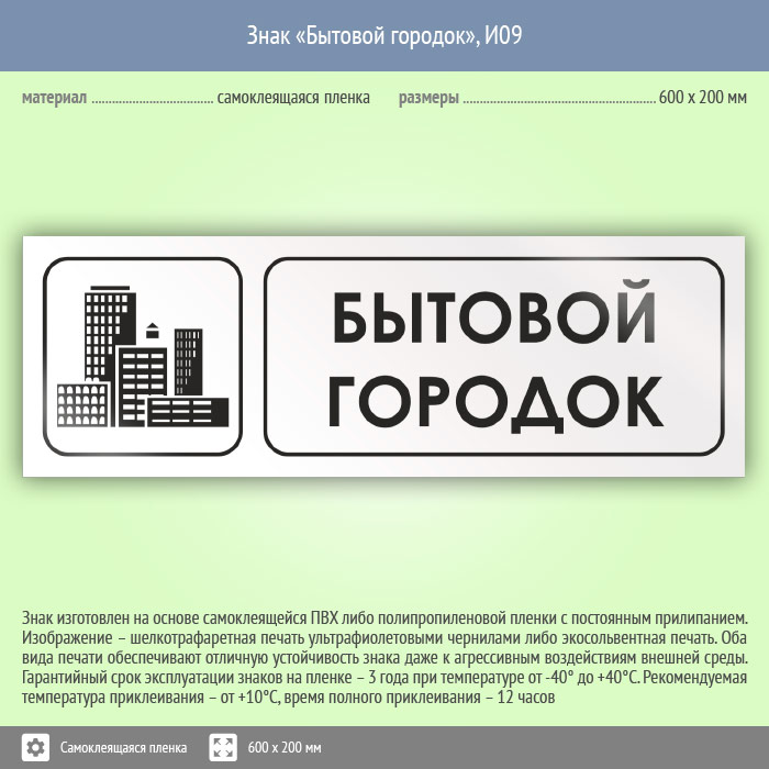 Знак «Бытовой городок», И09 (пленка, 600х200 мм) в Лобне купить