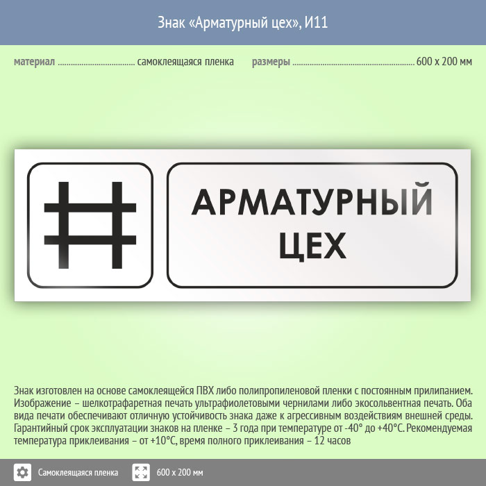 Знак «Арматурный цех», И11 (пленка, 600х200 мм) в Лобне купить