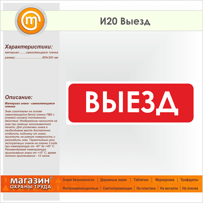 Знак «Выезд», И20 (пленка, 900х300 мм) в Лобне купить