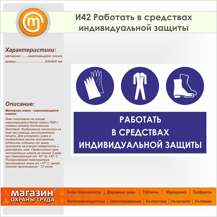 Знак «Работать в средствах индивидуальной защиты», И42 (пленка, 900х600 мм) в Лобне купить