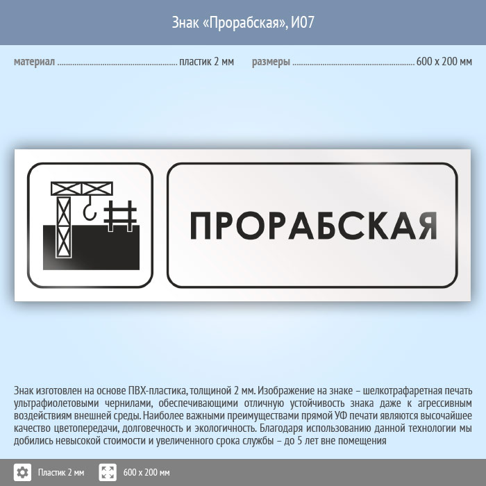 Знак «Прорабская», И07 (пластик, 600х200 мм) в Лобне купить