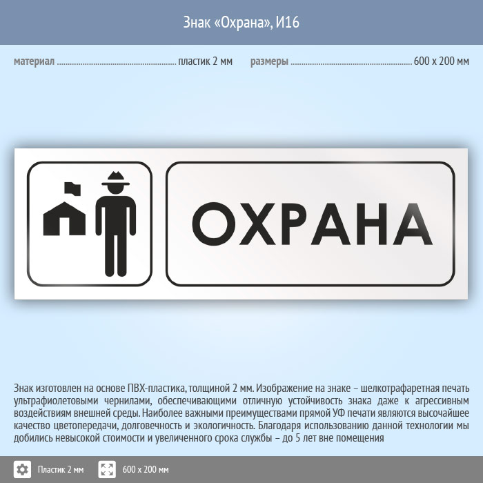 Знак «Охрана», И16 (пластик, 600х200 мм) в Лобне купить