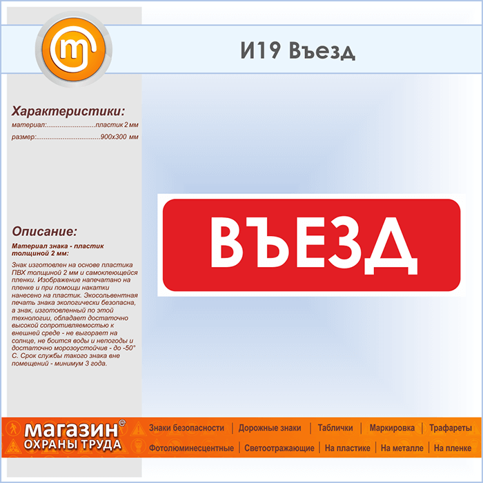 Знак «Въезд», И19 (пластик, 900х300 мм) в Лобне купить