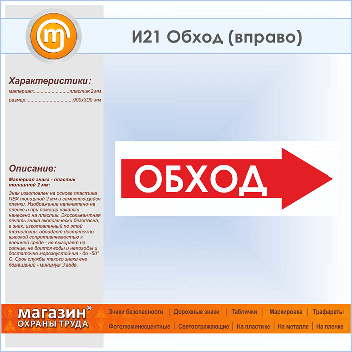 Знак «Обход (вправо)», И21 (пластик, 900х300 мм) в Лобне купить