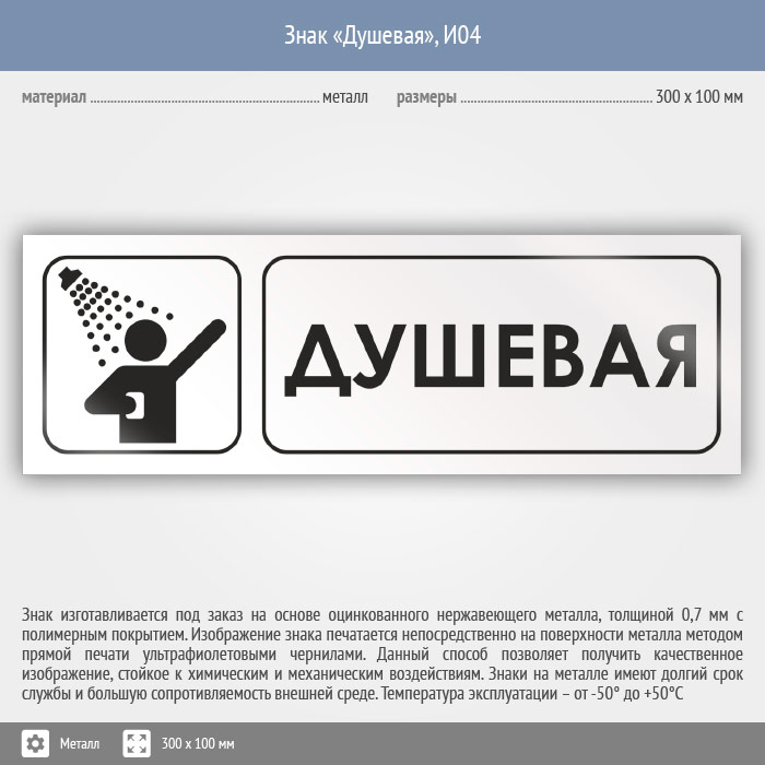 Знак «Душевая», И04 (металл, 300х100 мм) в Лобне купить