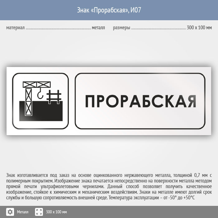 Знак «Прорабская», И07 (металл, 300х100 мм) в Лобне купить