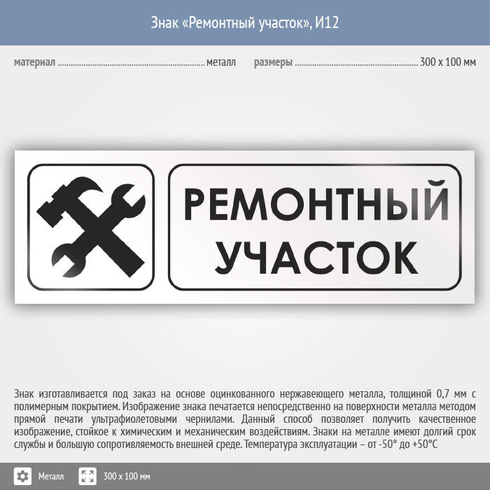 Знак «Ремонтный участок», И12 (металл, 300х100 мм) в Лобне купить