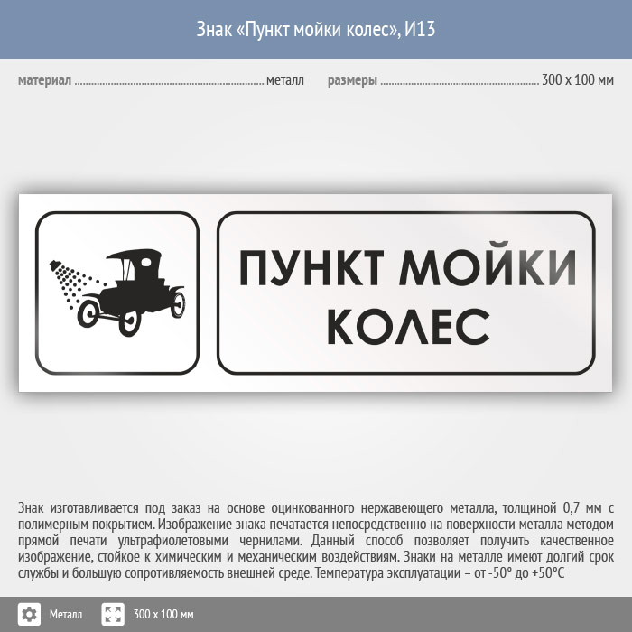 Знак «Пункт мойки колес», И13 (металл, 300х100 мм) в Лобне купить