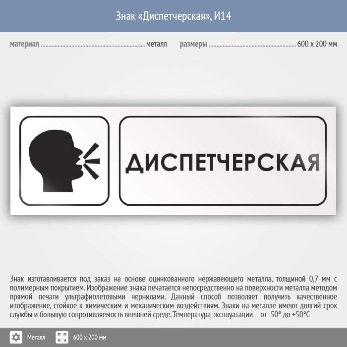 Знак «Диспетчерская», И14 (металл, 600х200 мм) в Лобне купить