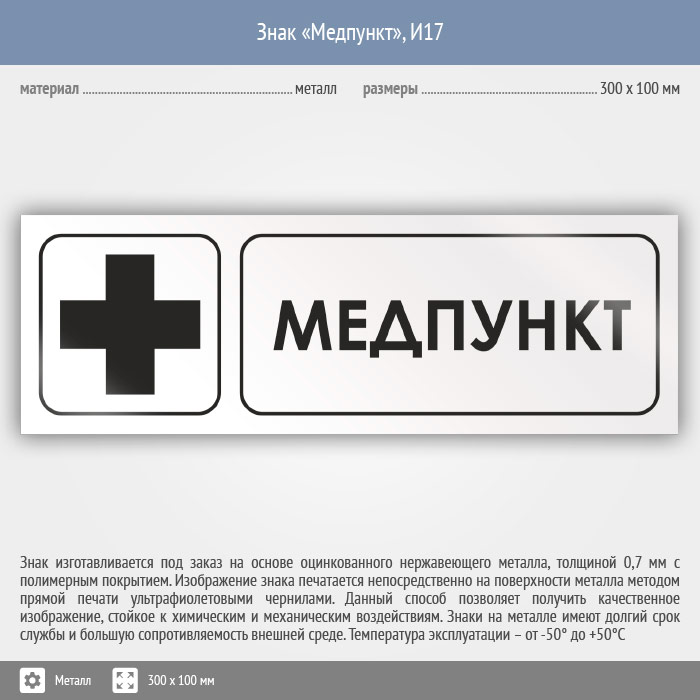 Знак «Медпункт», И17 (металл, 300х100 мм) в Лобне купить