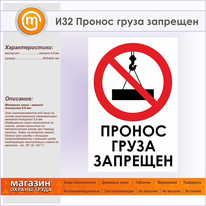 Знак «Пронос груза запрещен», И32 (металл, 600х900 мм) в Лобне купить
