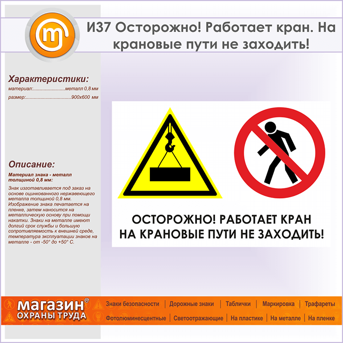 Знак «Осторожно! Работает кран. На крановые пути не заходить!», И37 (металл, 900х600 мм) в Лобне купить