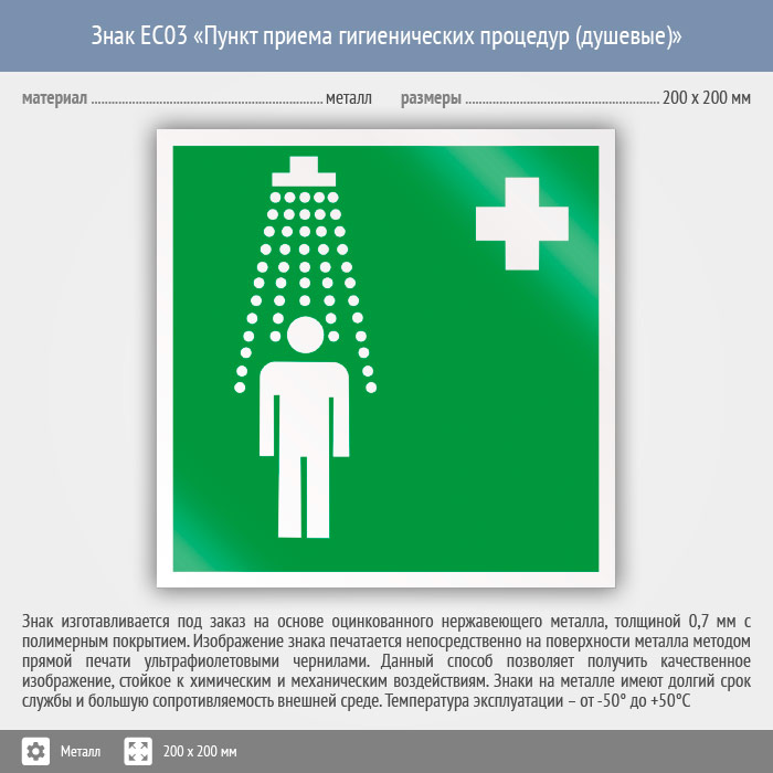 Знак EC03 «Пункт приема гигиенических процедур (душевые)» (металл, 200х200 мм) в Лобне купить