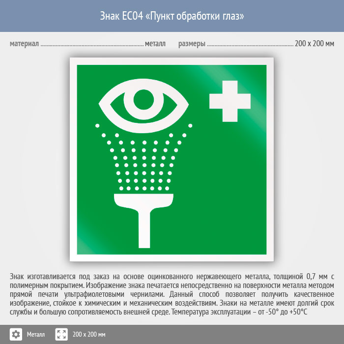 Знак EC04 «Пункт обработки глаз» (металл, 200х200 мм) в Лобне купить
