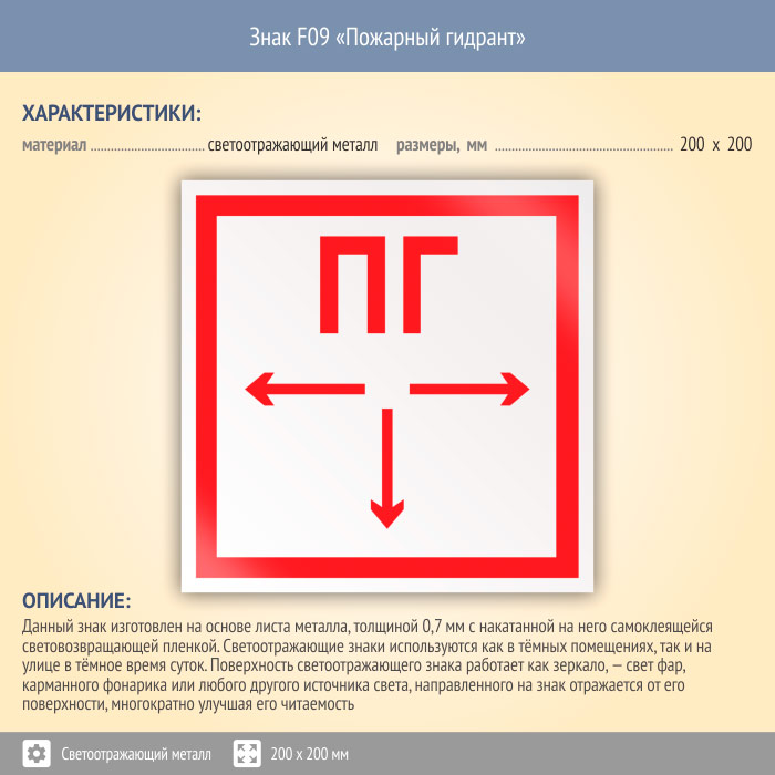 Знак F09 «Пожарный гидрант» (светоотражающий металл, 200х200 мм) в Лобне купить