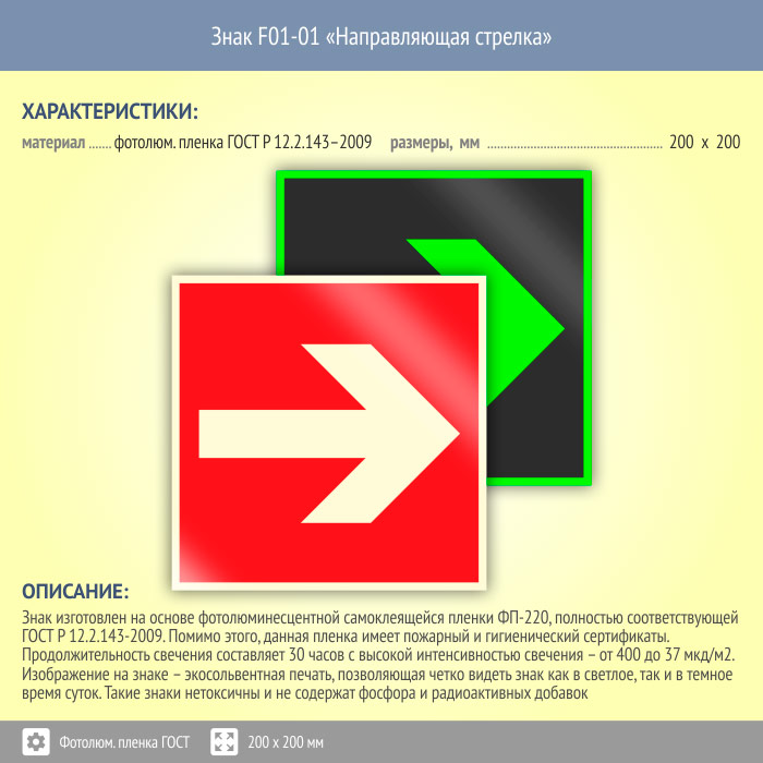 Знак F01-01 «Направляющая стрелка» (фотолюминесцентная пленка ГОСТ 34428-2018, 200х200 мм) в Лобне купить